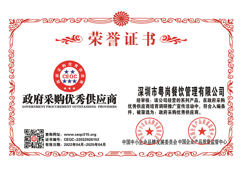深圳市粵崗餐飲管理有限公司,是一家集蔬菜種植和農(nóng)副產(chǎn)品配送為一體的專業(yè)型餐飲公司,主要為學(xué)校、工廠企事業(yè)機(jī)關(guān)單位提供蔬菜和農(nóng)副產(chǎn)品配送服務(wù)。公司自成立以來始終以質(zhì)優(yōu)價(jià)廉、服務(wù)至上為原則,嚴(yán)格按照ISO:9001國際標(biāo)準(zhǔn)體系進(jìn)行管理。同時(shí)建立了行業(yè)領(lǐng)先的配送中心、大型冷庫和保鮮庫、檢測(cè)中心以及專業(yè)化的配送團(tuán)隊(duì),能長期安全、穩(wěn)定、準(zhǔn)時(shí)的配送貨物。我們所有蔬菜均經(jīng)過初步加工、無黃葉,無泥沙等雜質(zhì),利用率達(dá)97%以上...保障向用戶提供的各類食材的衛(wèi)生和質(zhì)量。公司為了適應(yīng)不同客戶的需求,配有專業(yè)人員和配送車輛,實(shí)行“一對(duì)一”的服務(wù)體制,一心一意的為客戶服務(wù),秉承粵崗誠實(shí)守信、服務(wù)第一、客戶至上的服務(wù)標(biāo)準(zhǔn),真正讓客戶花最少的錢吃最好的菜?;泹彾嗄陙砗我孕佬老驑s,因?yàn)槲覀冎乐挥杏掠趽?dān)當(dāng)責(zé)任,才能承擔(dān)更大的責(zé)任,就是因?yàn)?粵崗員工貫徹公司態(tài)度決定一切、細(xì)節(jié)決定成敗的真理,從質(zhì)量抓起,從服務(wù)做起,才創(chuàng)造了如今的規(guī)模化供應(yīng)、統(tǒng)一性配送、專業(yè)化服務(wù)的粵崗。